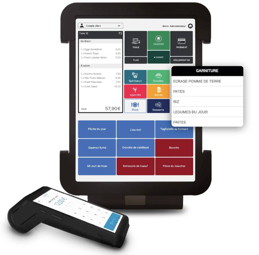 Les équipes peuvent prendre les commandes, gérer les tables et encaisser rapidement.